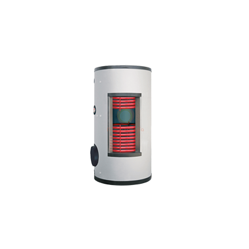 Acumulador para agua caliente sanitaria esmaltado al vacío. Puede utilizarse para caldera, sistemas de paneles solares, bomba de calor y cartucho eléctrico. Disponible en capacidades de 200, 300 y 500 litros.